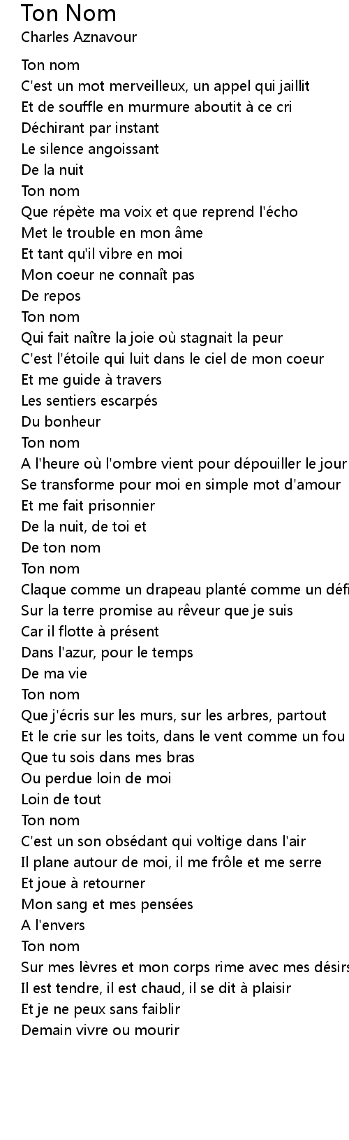 | Sur mes le vres et mon corps rime avec mes de sirs | |
