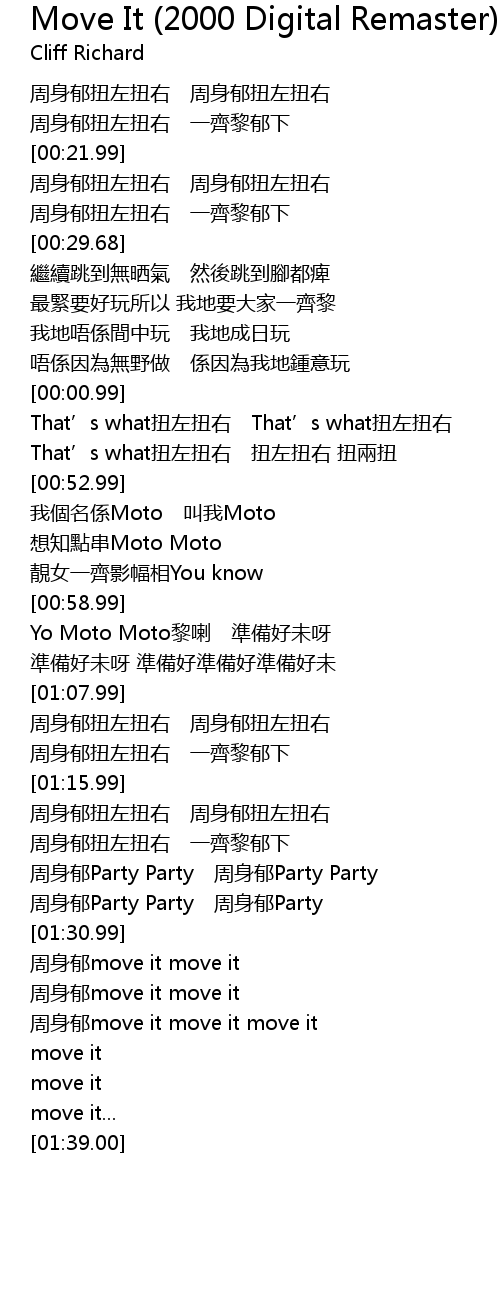 | 歌曲 | Move It (2000 Digital Remaster) |