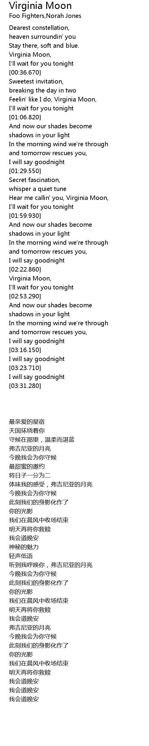 | [00:30.100] | Virginia Moon, |