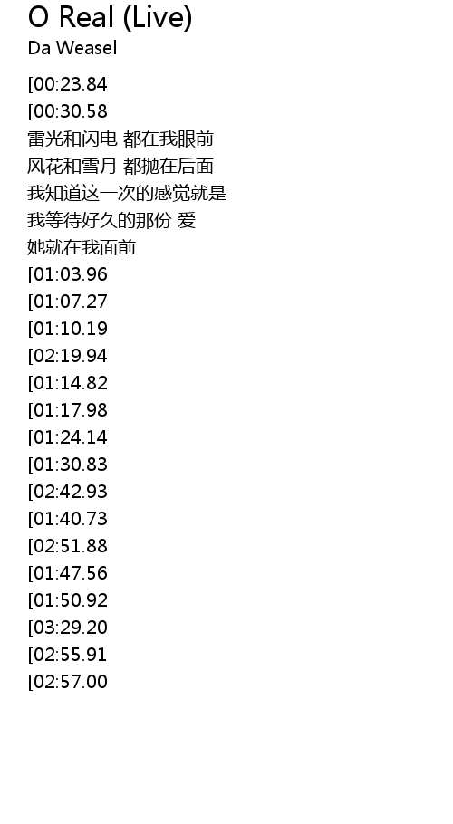 | [03:32.42][02:55.91][01:57.63] | 当真情真爱放出光芒 |