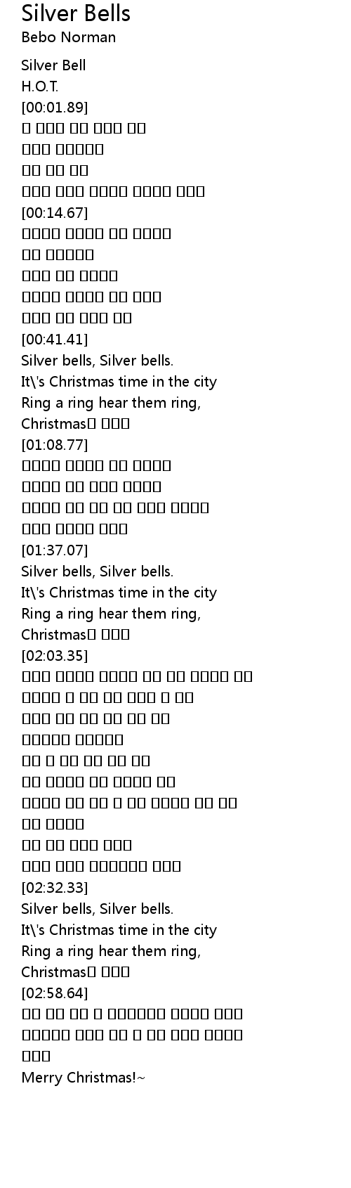 | [02:32.81] | Silver bells, Silver bells. |