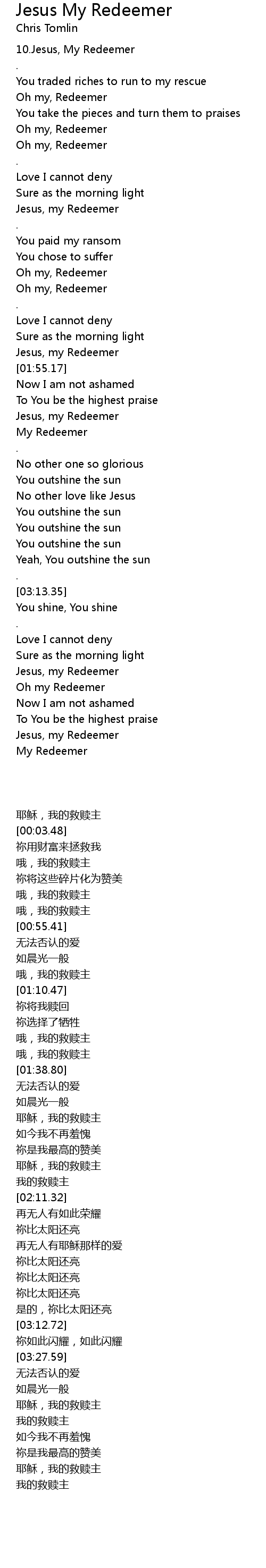 10.Jesus, My Redeemer |