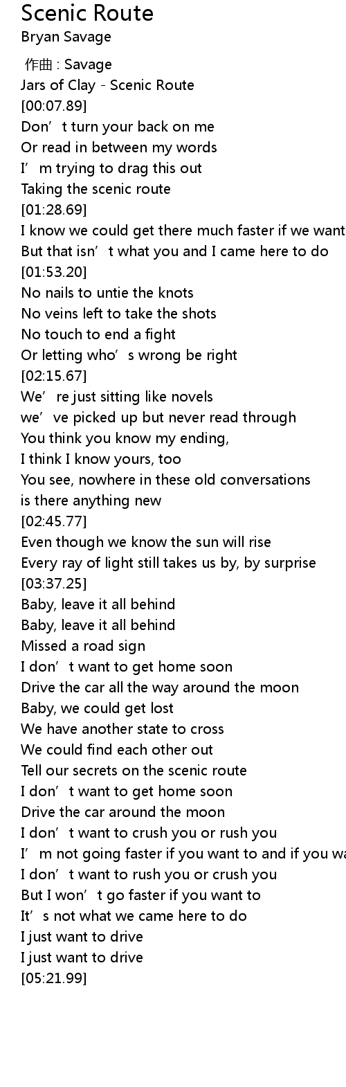| [04:08.01] | Tell our secrets on the scenic route |