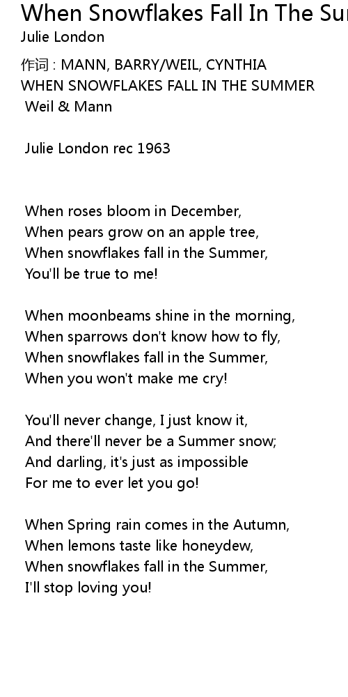 | 歌曲 | When Snowflakes Fall In The Summer |
