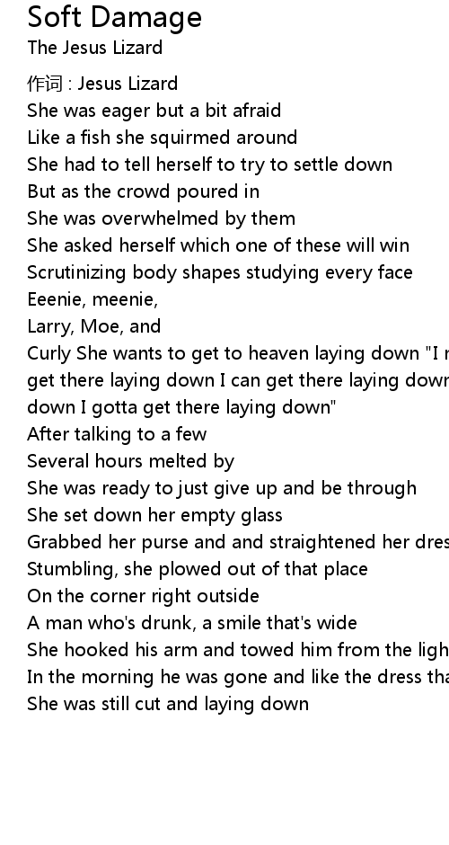 | Curly She wants to get to heaven laying down "I now know how I'll get there I'll get there laying down I can get there laying down I'm gonna get there laying down I gotta get there laying down" | |