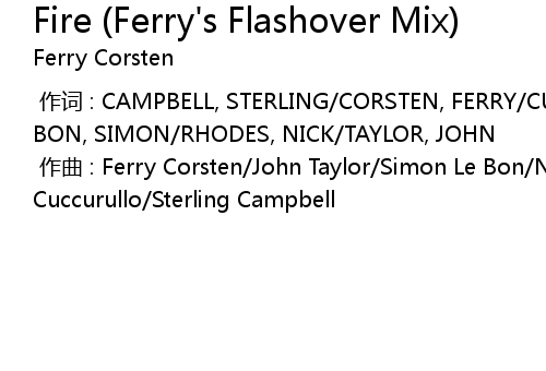 | 歌曲 | Fire (Ferry's Flashover Mix) |