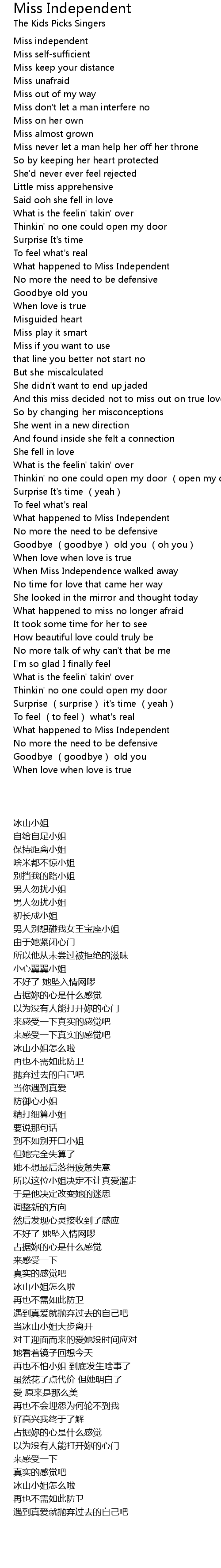 | [00:12.420] | Miss independent |