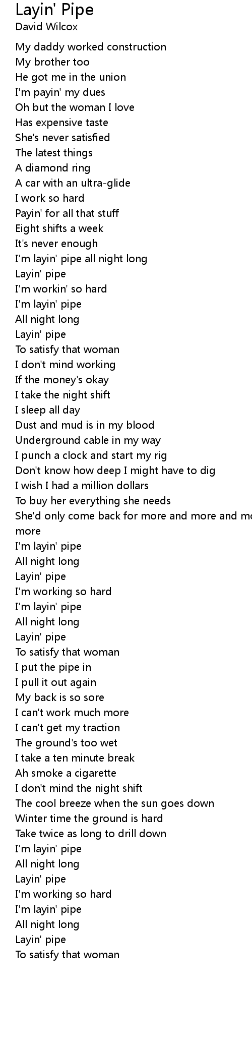 I'm layin' pipe all night long |