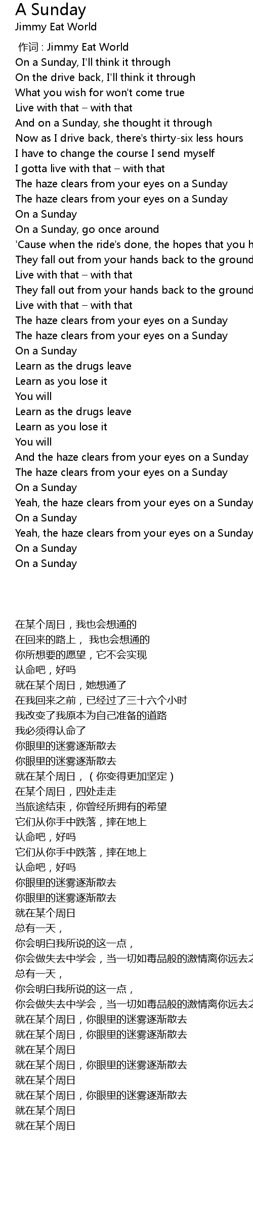 | [02:33.20] | The haze clears from your eyes on a Sunday |