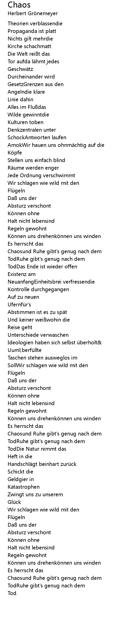 | Chaosund Ruhe gibt' s genug nach dem | |