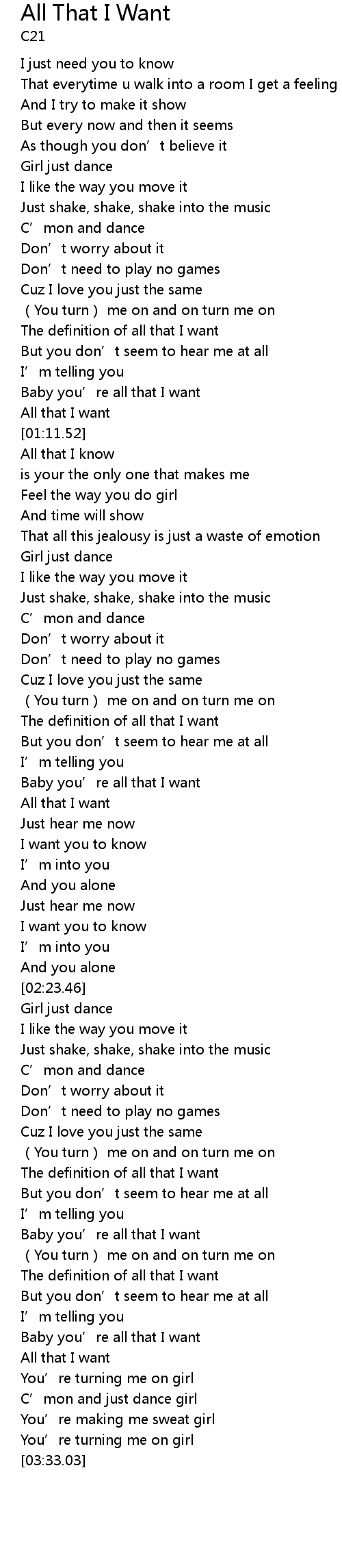 | [03:15.64] | All that I want |