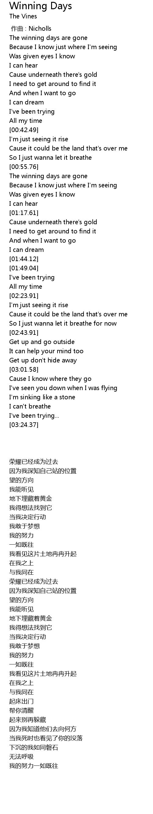 | [01:02.00] | The winning days are gone |
