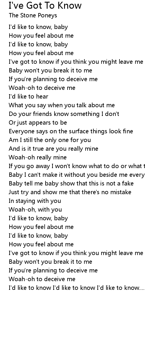 I'd like to know, baby |