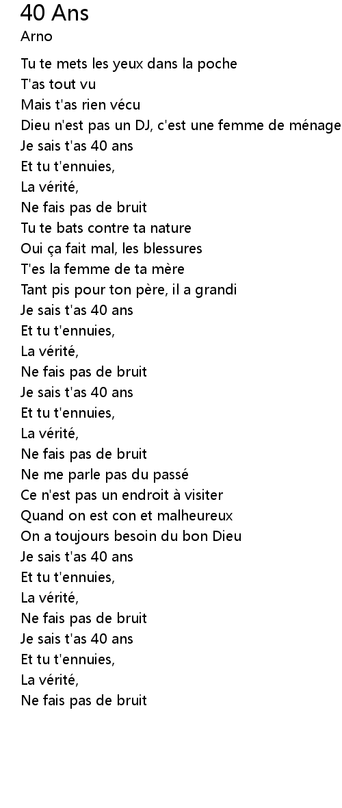 | 歌曲 | 40 Ans |