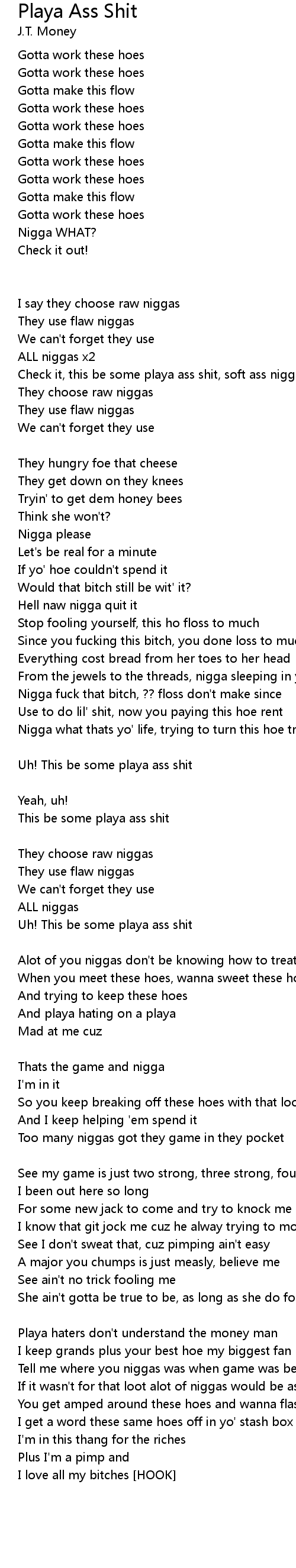 Check it, this be some playa ass shit, soft ass niggas need to check you bitch |
