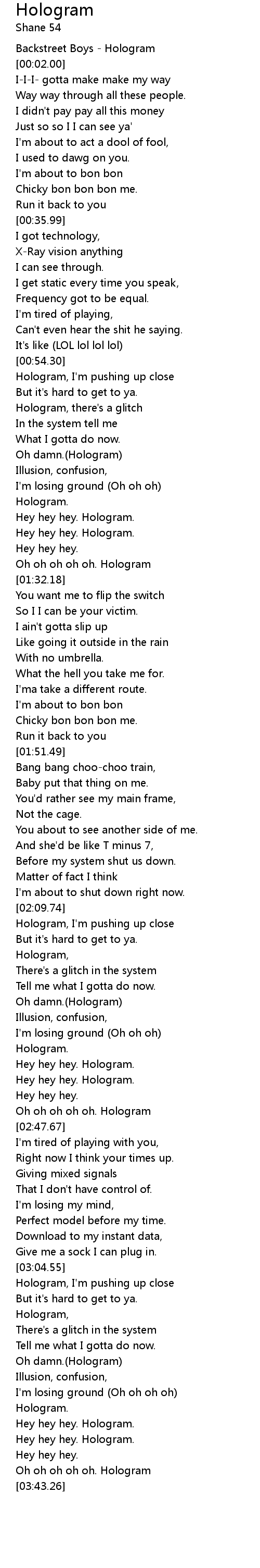 | [03:37.15] | Oh oh oh oh oh. Hologram |