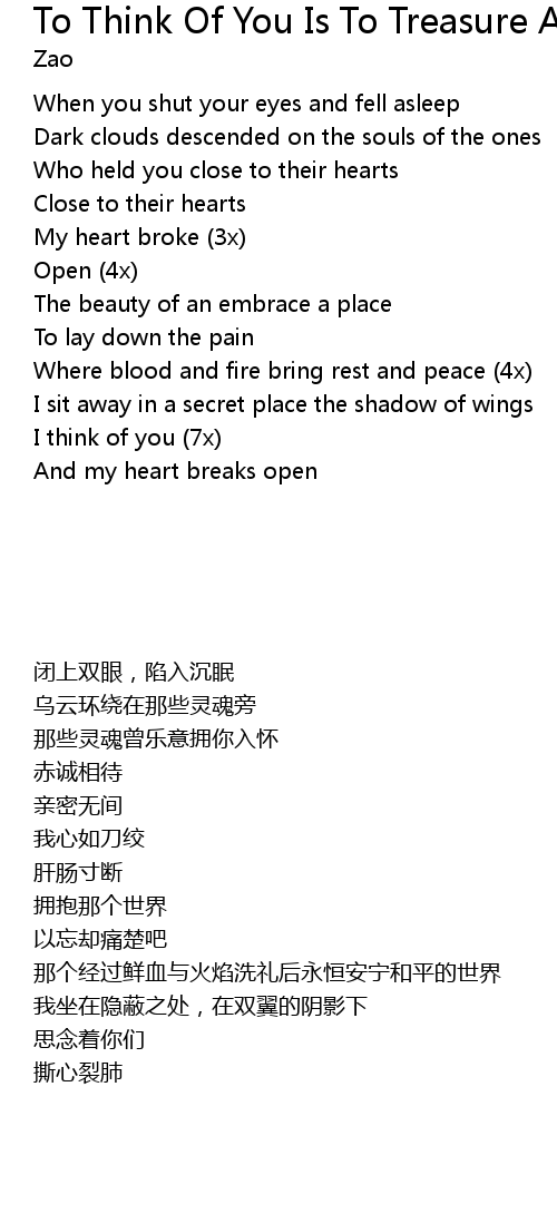 | 歌曲 | To Think Of You Is To Treasure An Absent Memory |