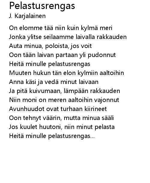 | Jonka ylitse seilaamme laivalla rakkauden | |
