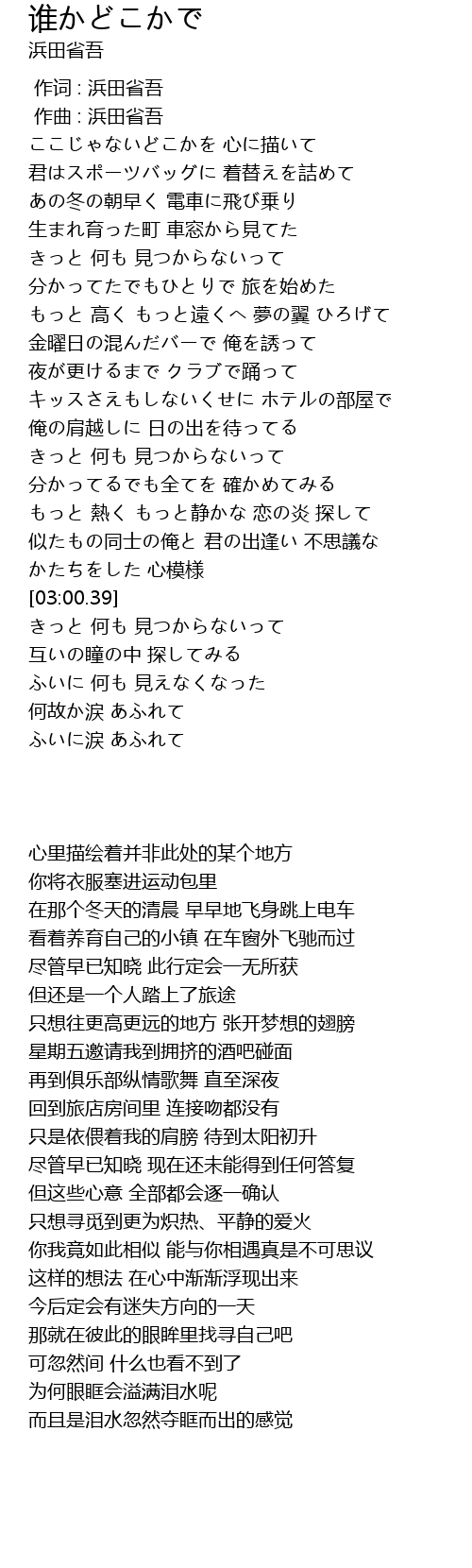| [00:01.000] | 作曲 : 浜田省吾 |