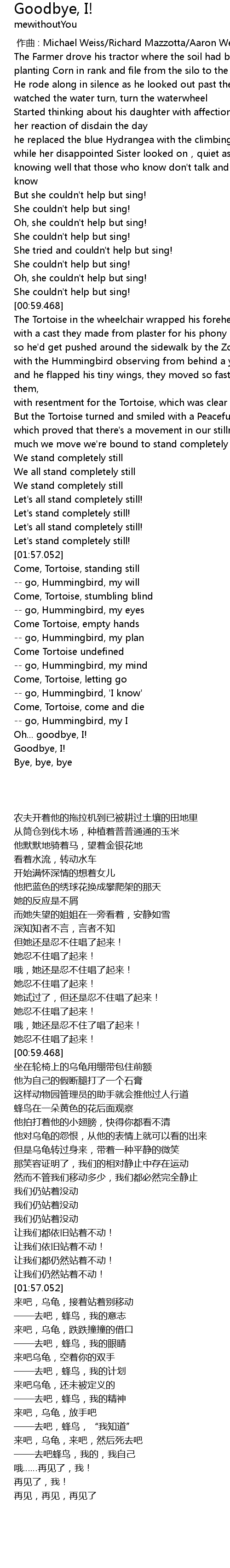 | [03:19.398] | ——去吧蜂鸟,我的,我自己 |