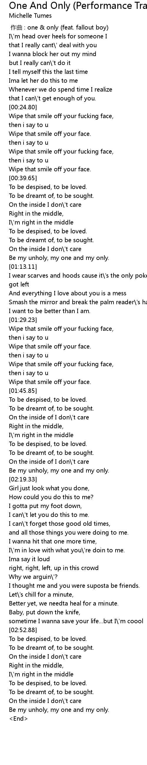 | [00:00.00] | 作曲 : one & only (feat. fallout boy) |