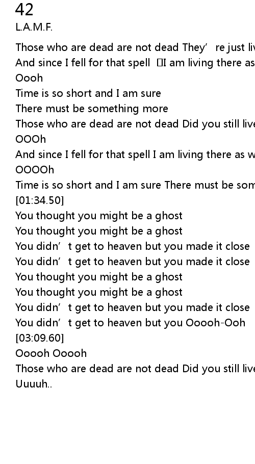 | [00:-0.50] | Those who are dead are not dead They' re just living in my head |