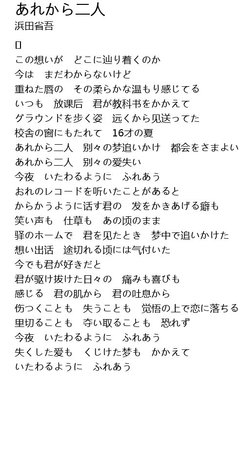 | あれから二人 别々の梦追いかけ 都会をさまよい | |