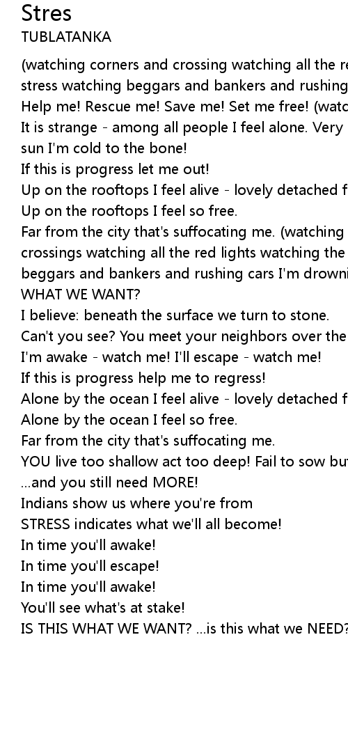 stress watching beggars and bankers and rushing cars I'm drowning in this mess) |