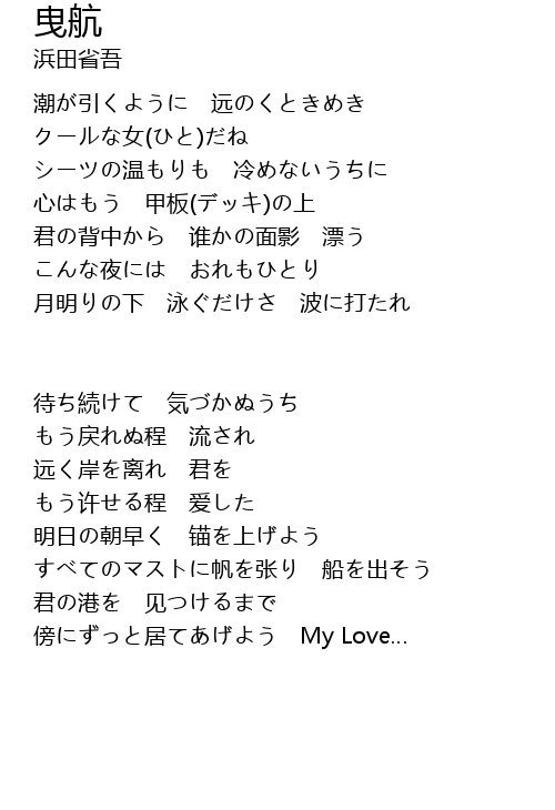 | 月明りの下 泳ぐだけさ 波に打たれ | |