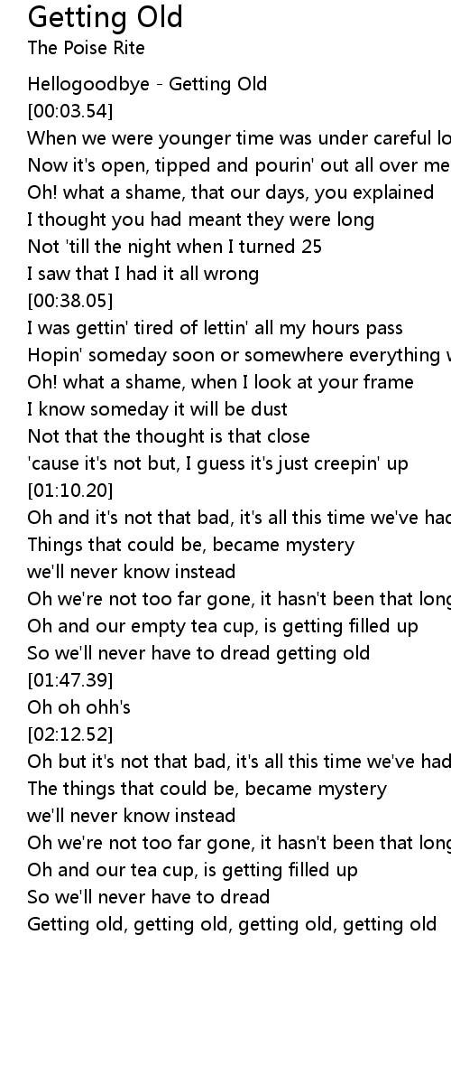 Getting old, getting old, getting old, getting old |