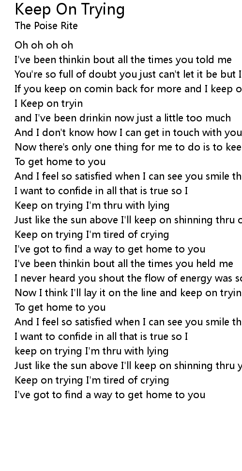 Now there's only one thing for me to do is to keep on tryin |
