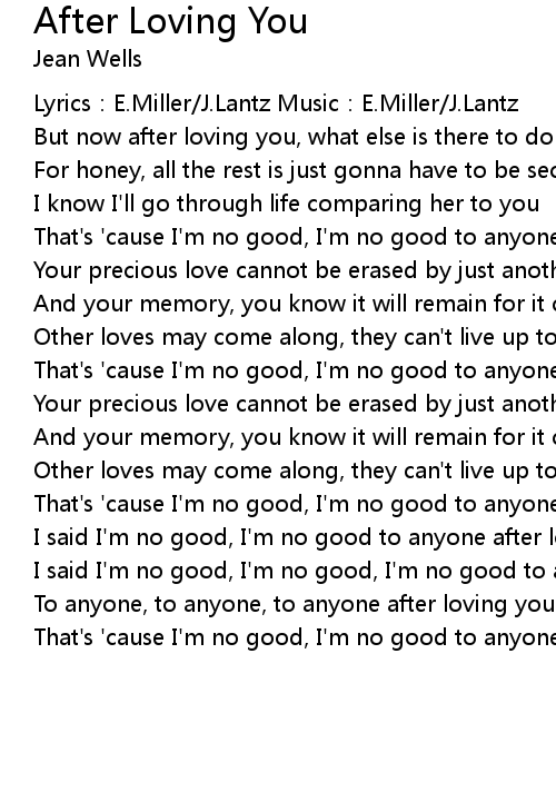 | I said I'm no good, I'm no good to anyone after loving you | |