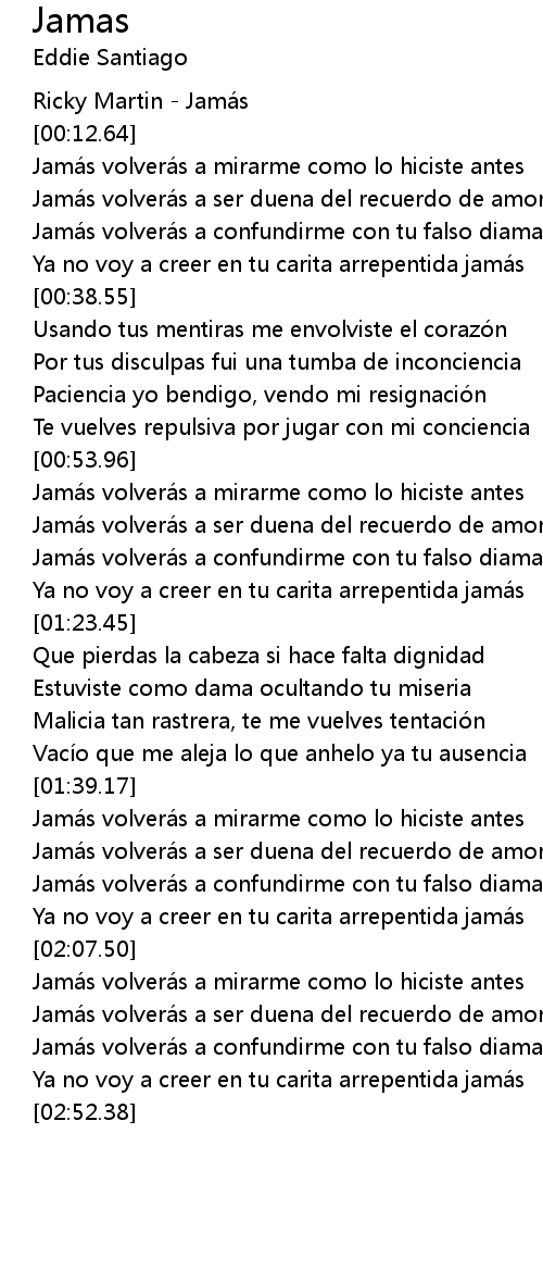 | [00:00.00] | Ricky Martin - Jamás |