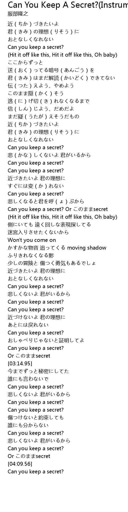 | [01:37.85] | Can you keep a secret? Or このままsecret |