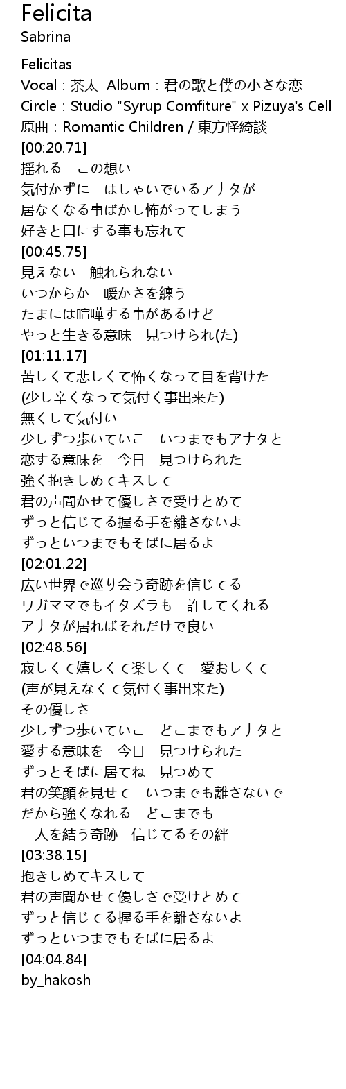 | [03:57.28] | ずっといつまでもそばに居るよ |