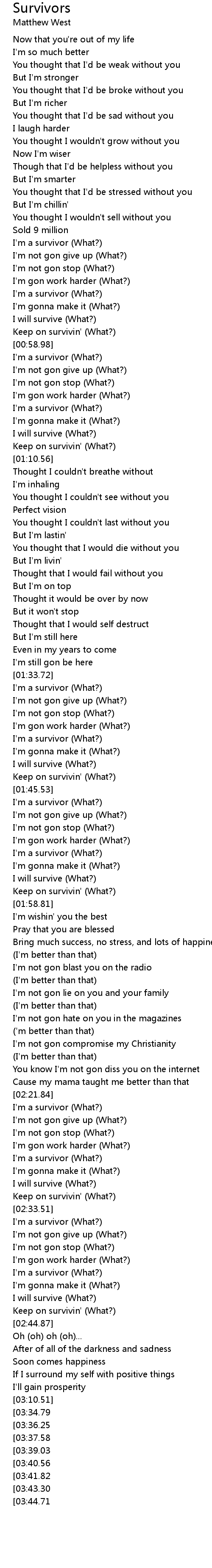 I'm a survivor (What?) |