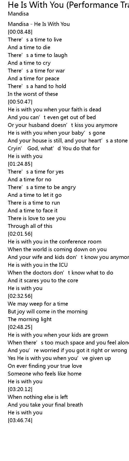 | 歌曲 | He Is With You (Performance Track In Key Of Ab Without Background Vocals) |