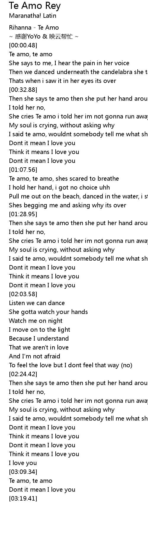 | [00:50.15] | I said te amo, wouldnt somebody tell me what she said |