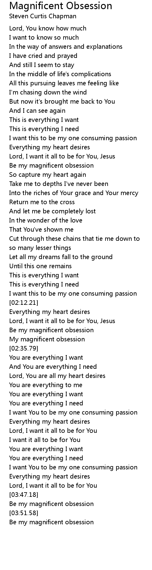 Be my magnificent obsession |