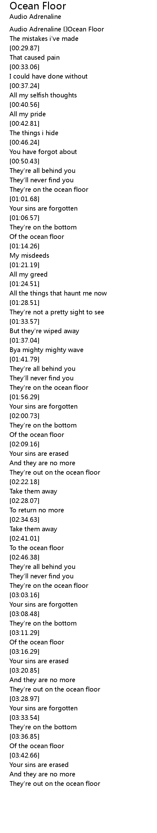 | [00:02.31] | Audio Adrenaline Ocean Floor |
