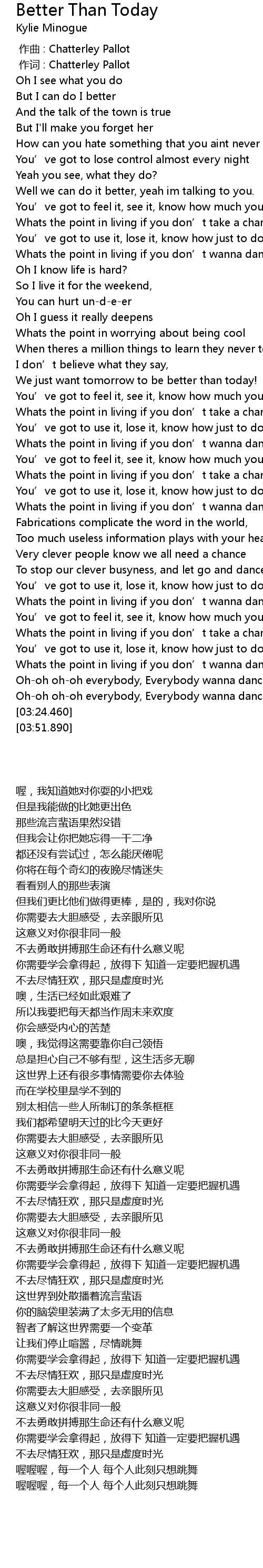 | 歌曲 | Better Than Today |
