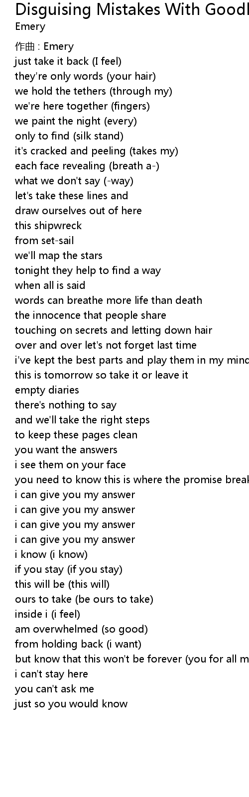 | 歌曲 | Disguising Mistakes With Goodbyes |