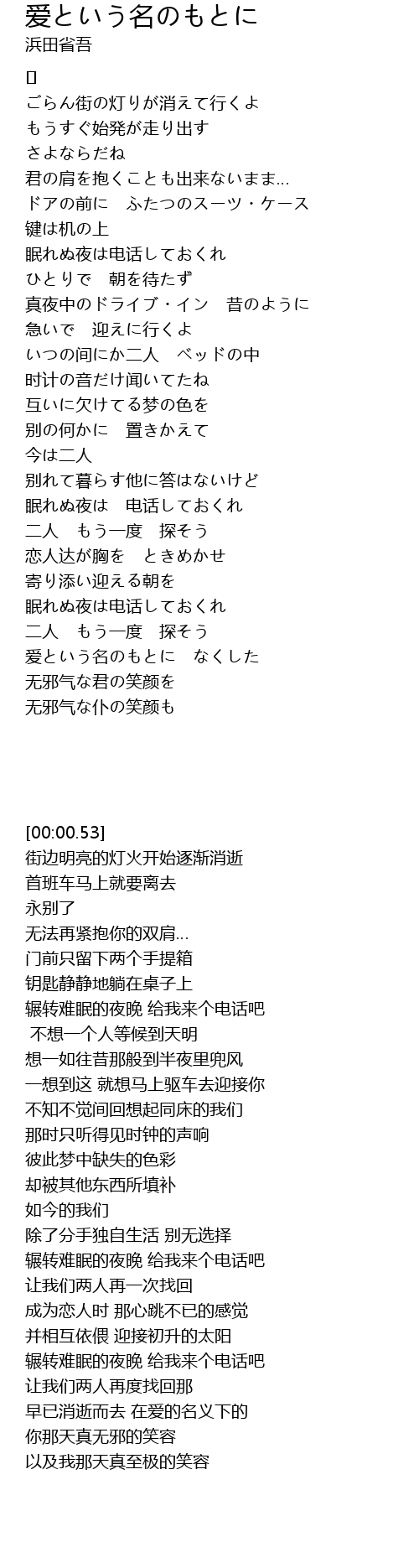 爱という名のもとに なくした |
