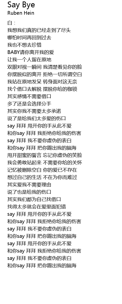 | 歌曲 | Say Bye |