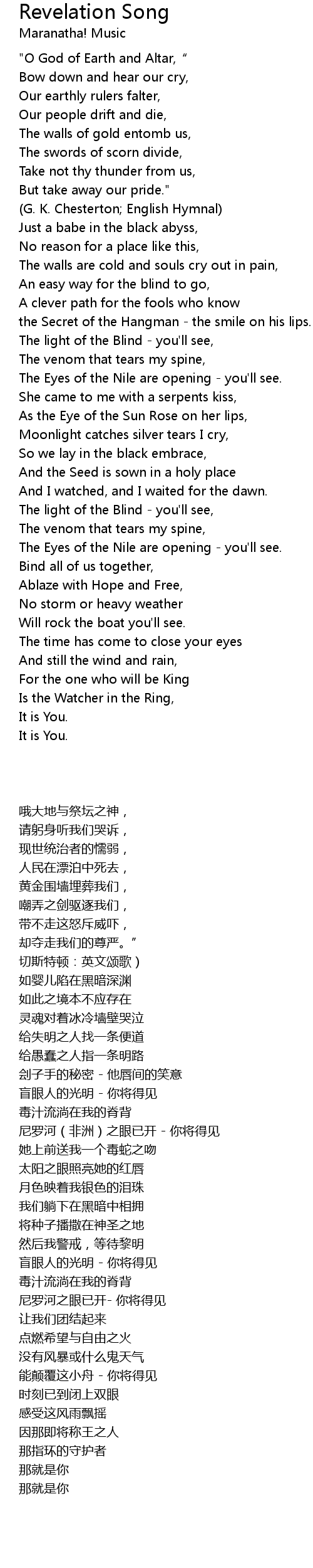 | [01:12.380] | (G. K. Chesterton; English Hymnal) |