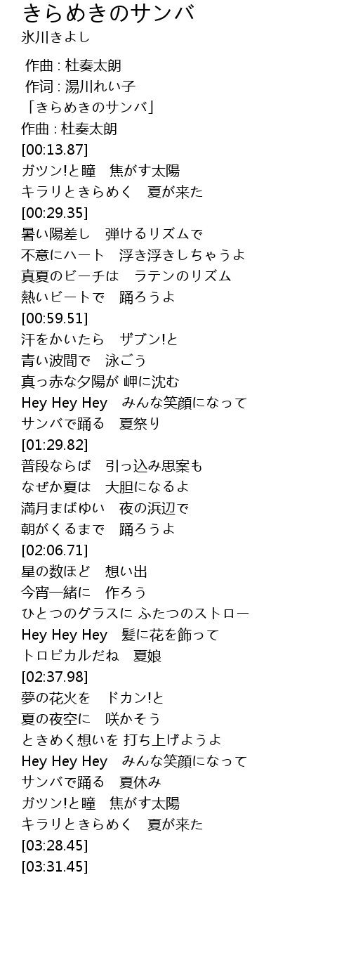 | [00:47.78] | 真夏のビーチは ラテンのリズム |