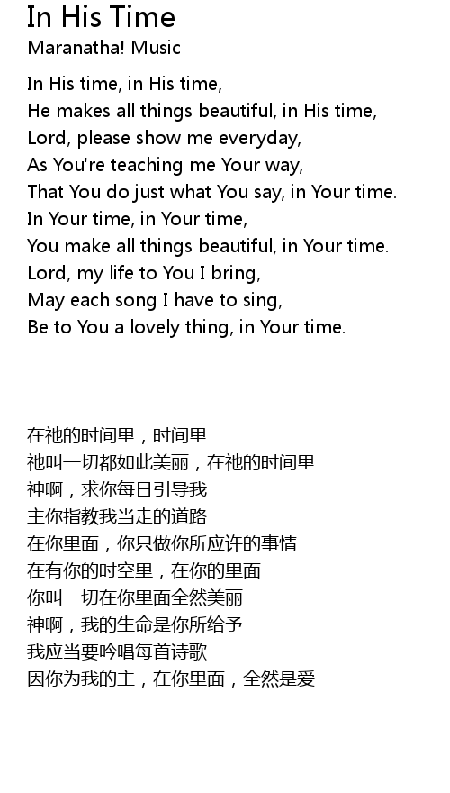 | [01:03.000] | He makes all things beautiful, in His time, |