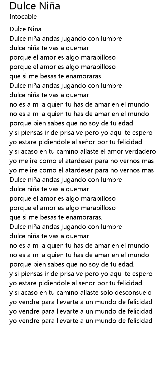 | 歌曲 | Dulce Niña |