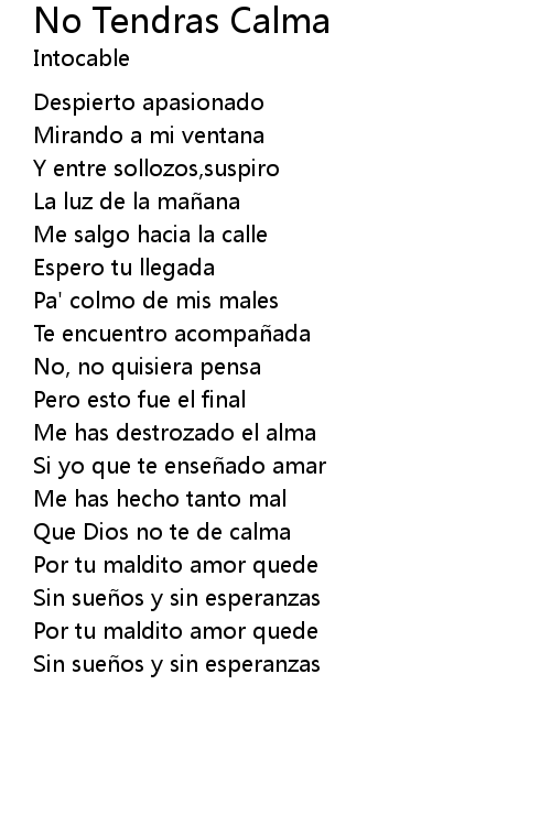 | 歌曲 | No Tendras Calma |