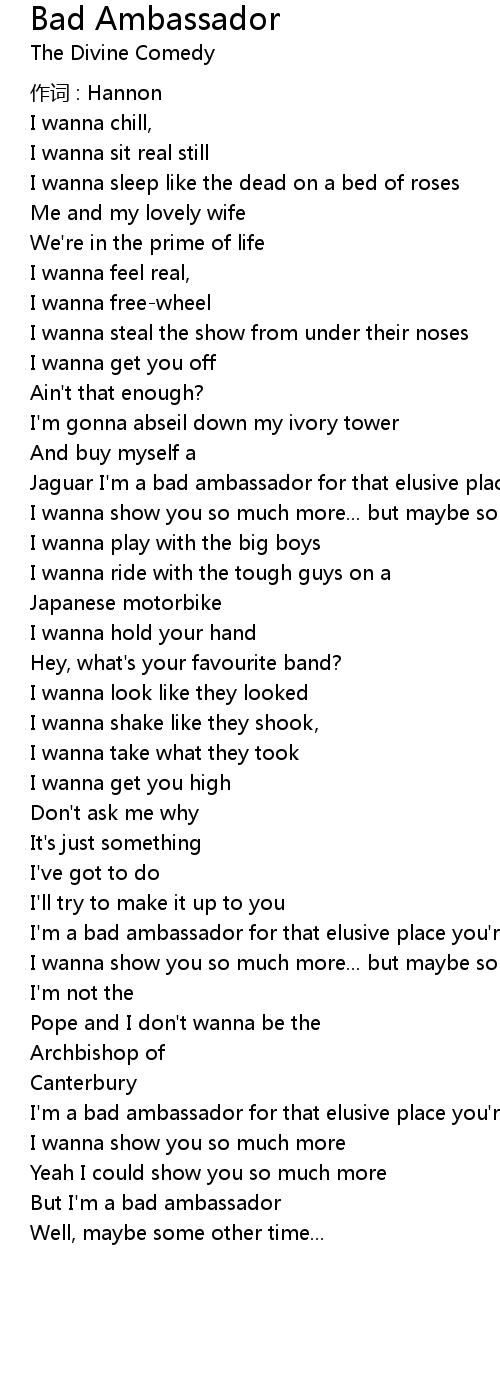| I' m a bad ambassador for that elusive place you' re searching for | |
